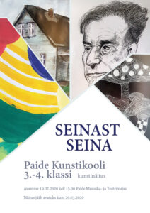 Eile avasime Paide Muusika- ja Teatrimajas kunstikooli 3.-4. klassi kunstinäituse SEINAST SEINA. Näitusel osalevad noored kunstnikud: Rico Feštšin, Lisanne Jasmiin Simson, Laura Väli, Minna-Mai Kaas, Luukas Kookmaa, Trevor Tooming, Laura Kookmaa, Eliise Koovit, Aveli Müür, Karl Gustav Savi, Anett Krasavin, Rico Sagor, Kelly Kalda, Marinel Perandi, Gulliver Oselini.