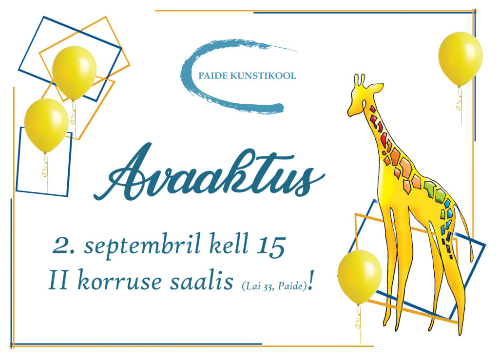 Kunstikooli avaaktus toimub 2. septembril Paide koolis (Lai 33) kell 15.00 kooli II korruse fuajees.
