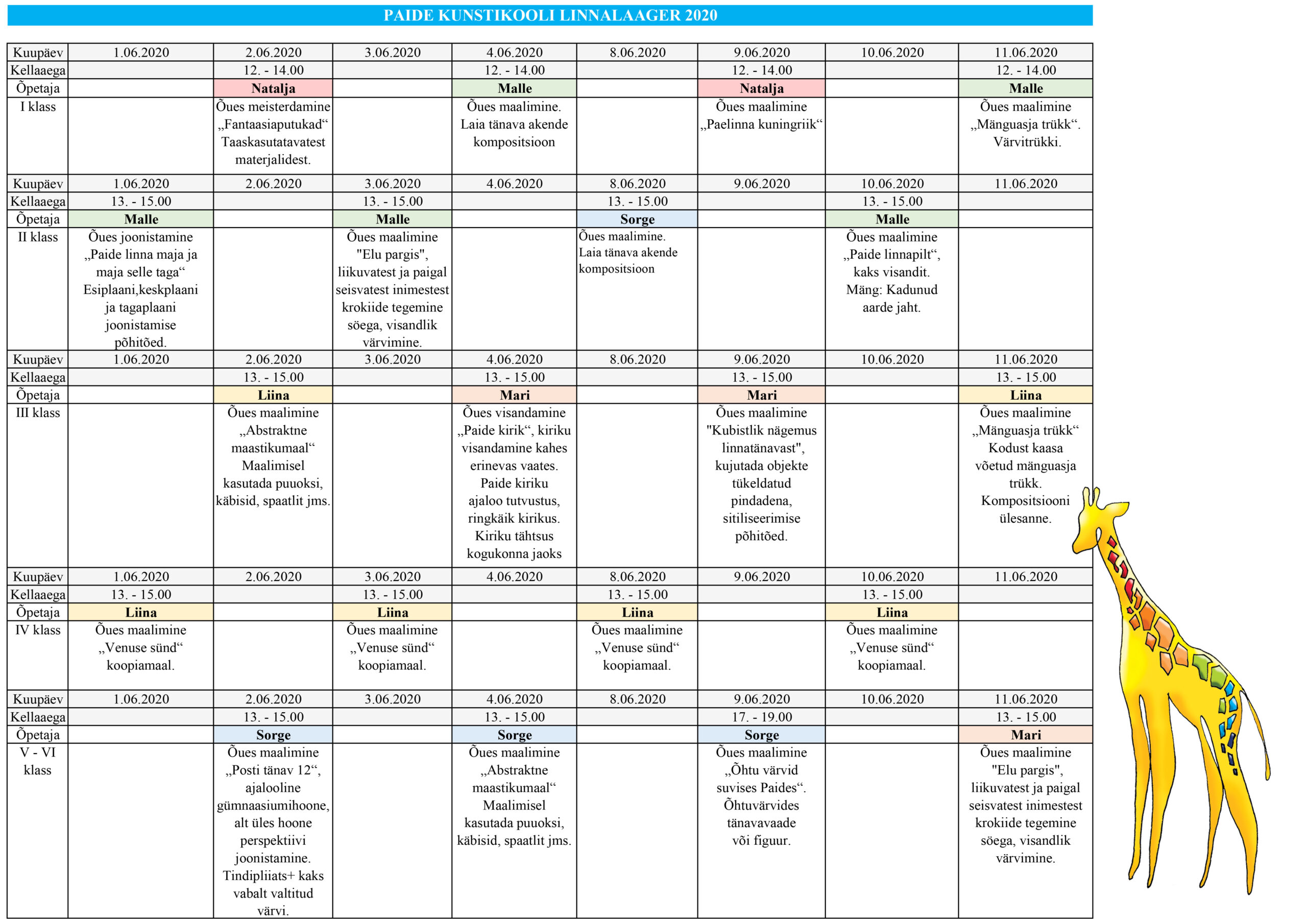 01. – 11. juuni toimub kunstikooli esimese kuni kuuenda klassi õpilaste linnalaager. Olge head ja tutvuge ajakavaga.